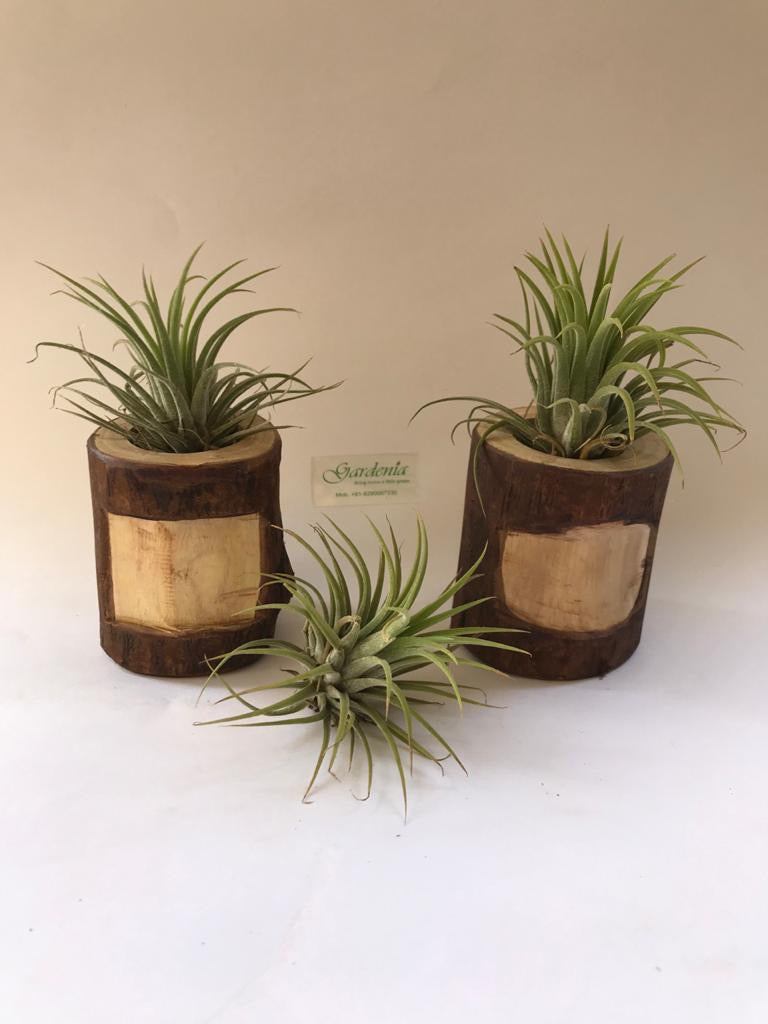 Air plant in a wooden pot. A perfect easy to maintain home decor plant. Can be kept in terrariums as well.
