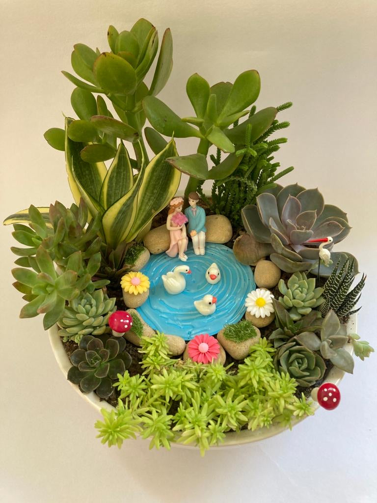 Color of the pot, succulents, and miniatures may vary as per the availability. For any customization, contact us on +91-8290007230