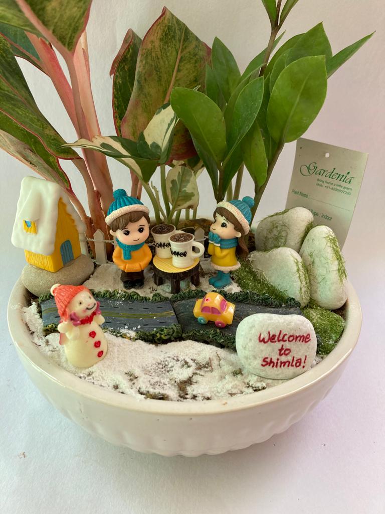 Coffee in Winters Tray is for those who enjoy winter trip in snow. It has Aglaonema (Chinese evergreen) which is a popular air purifying indoor plant with low maintenance and bright foliage and Zamia plant (also called cardboard palm) with low water need & is highly toxic to pets.