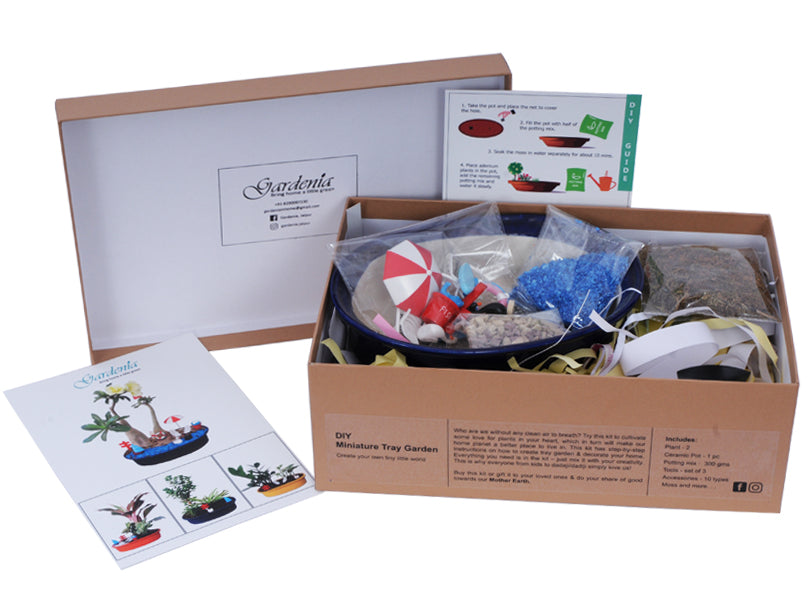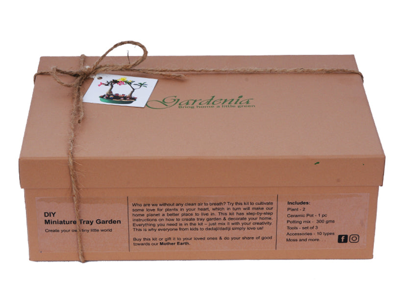A perfect gift box and an enchanting experience. Choose your plant here with the box or buy any indoor/outdoor plant of your choice from a nearby nursery and decorate the tray using your own creativity.