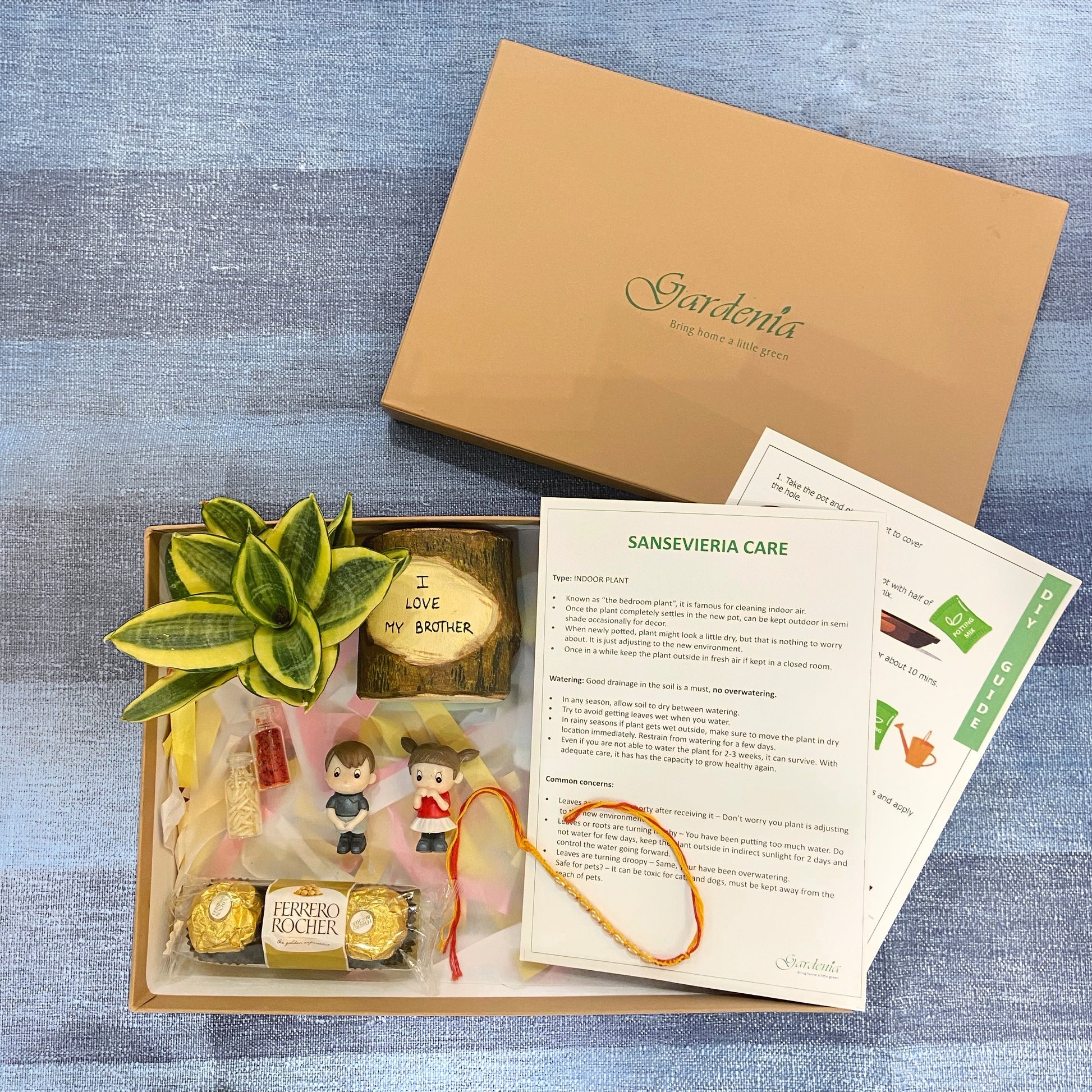 Not only the perfect gift box but also an enchanting experience by doing good to the nature. Give life to a plant on this Rakhi and watch it grow along as beautiful as your relationship with brother/sister.